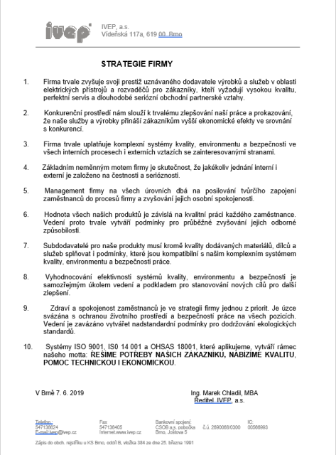 Vedení IVEP, a.s. se zavazuje k:
